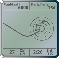 Ziel des Dart-Spiels ist es mit möglichst konstantem Tempo und Krafteinsatz zu fahren. Wenn Sie das Fahren bei gleichmäßiger Geschwindigkeit und Frequenz üben möchten oder sich an einen bestimmten 500m Schnitt gewöhnen wollen, ist das Dart-Spiel perfekt geeignet.