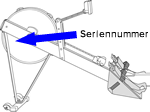 Das Etikett befindet sich zwischen den Vorderbeinen auf der unteren Seite des Ruderergometers. Die Seriennummer zeigt das Datum, an dem das Gerät verpackt wurde (Monat/Tag/Jahr). Eine typische Seriennummer von einem Modell D wäre zum Beispiel 082205/1.