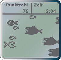 Beim Fisch-Spiel lernen Sie die Intensität anzupassen. Das Ziel dieses Spiel ist es, möglichst viele Punkte zu sammeln, indem die nahrhaften Fische gefressen werden und den grossen, gefährlichen Fischen aus dem Weg gegangen wird.