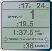 Bei der Spieleinstellung wählen Sie die Anzahl (2 bis 15) und die Länge der Intervalle, mit oder ohne Distanzstrafen (Null bis 250m möglich, in 50m Abschnitten). Nach Absolvierung der jeweiligen Intervalle werden die Erholungs- und totale Trainingszeit angezeigt. Danach werden Sie vom Monitor aufgefordert nicht mehr zu ziehen und wechselt in den Strafmodus.