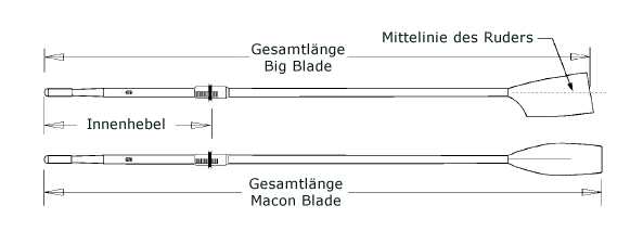 Die Länge eines Ruders, im Zusammenspiel mit weiteren Variablen wie Dollenabstand, Blattgröße, Blatttyp, Innenhebel (Abstand zwischen dem Griffende und der Aussenseite des Klemmrings), Einsatzwinkel usw., bestimmen das Hebelverhältnis/die Bootseinstellung beim Rudern.