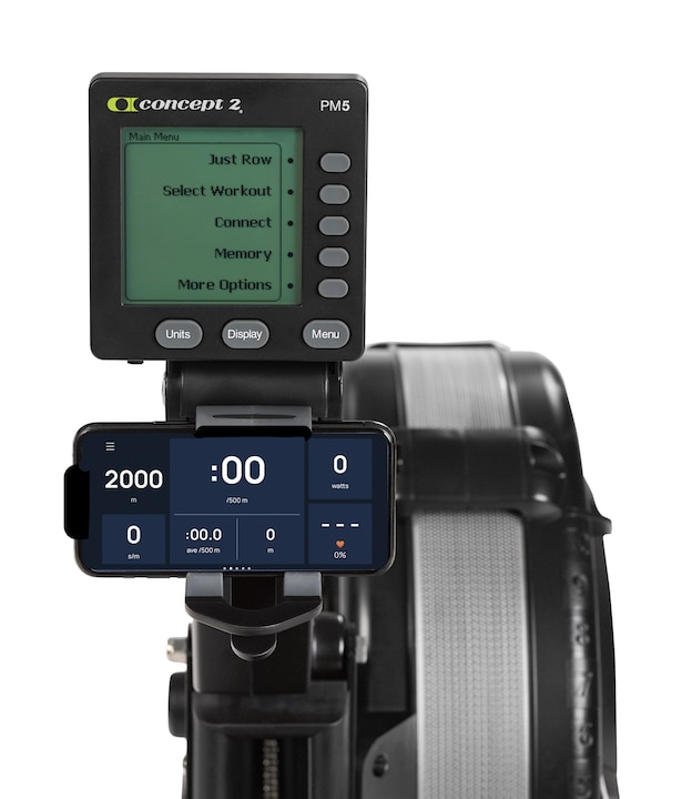 The powerful Performance Monitor connects via Bluetooth to a wide range of apps, including our own free app ErgData. ErgData allows you to set up workouts, take part in the Concept2 Workout of the Day, track and analyze your progress and more, including rowing with other members of the community on a virtual course. This is made easier with our integrated device holder that fits everything from phones to large tablets and is easily and quickly adjustable. See the Features for more information.