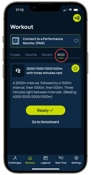 The beauty of the WOD is that you don't have to think about what workout you'll do—it's all ready for you to do with a just a few button pushes!