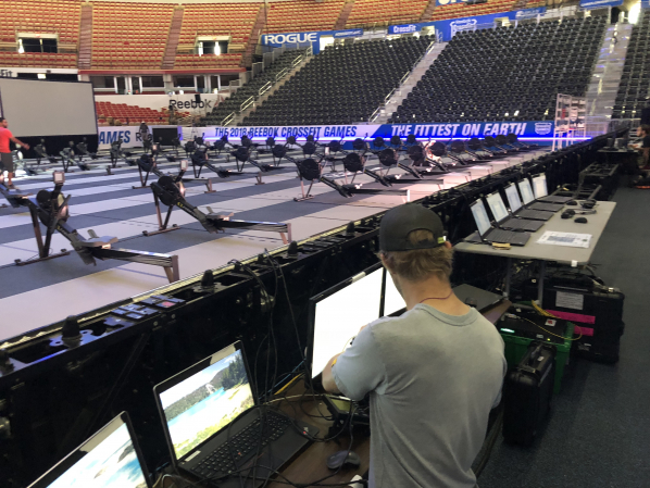 The teams at Rogue and CrossFit, including a huge volunteer squad, operate as a well-oiled machine, building the equipment and setting up the floor for this event. They easily added in our Concept2 technicians to their operations, as our team managed the race wiring and software, and helped out wherever we could.