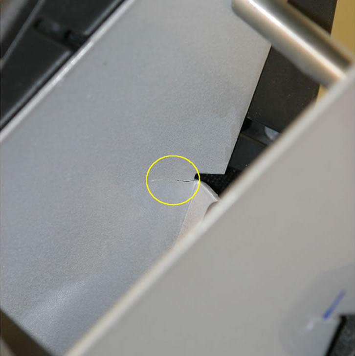 Enlarged view of a metal fatigue crack on the frame under the foot stretchers.