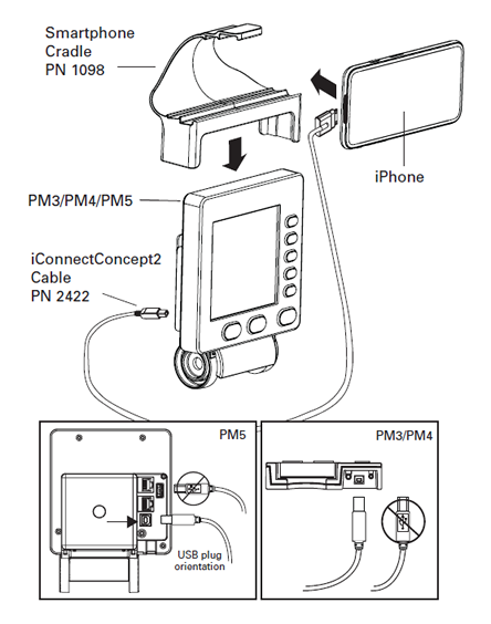 When you plug the iConnectConcept2 cable into your iOS device and run ErgData, the message at the bottom of the ErgData screen should change to "Please connect PM3 or PM4." If this does not appear, then there is a problem with the iOS device connecting to the iConnectConcept2 cable. Try disconnecting the cable, blow or clean any dust or debris out of the connectors and try again. If the problem persists, contact Concept2 for assistance.