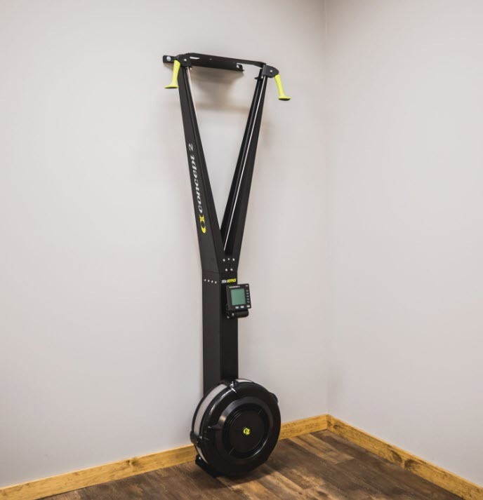 The SkiErg can be mounted on a wall to provide the most compact option. Wall mounting also allows the greatest flexibility for setting up seating like a stool, higher seat, or rolling up a wheelchair.